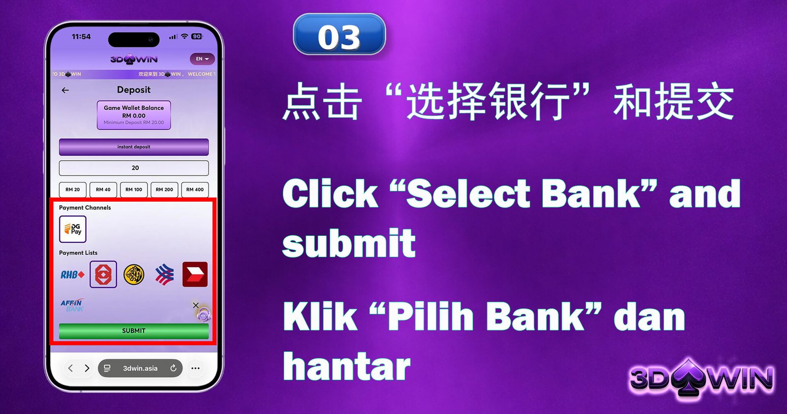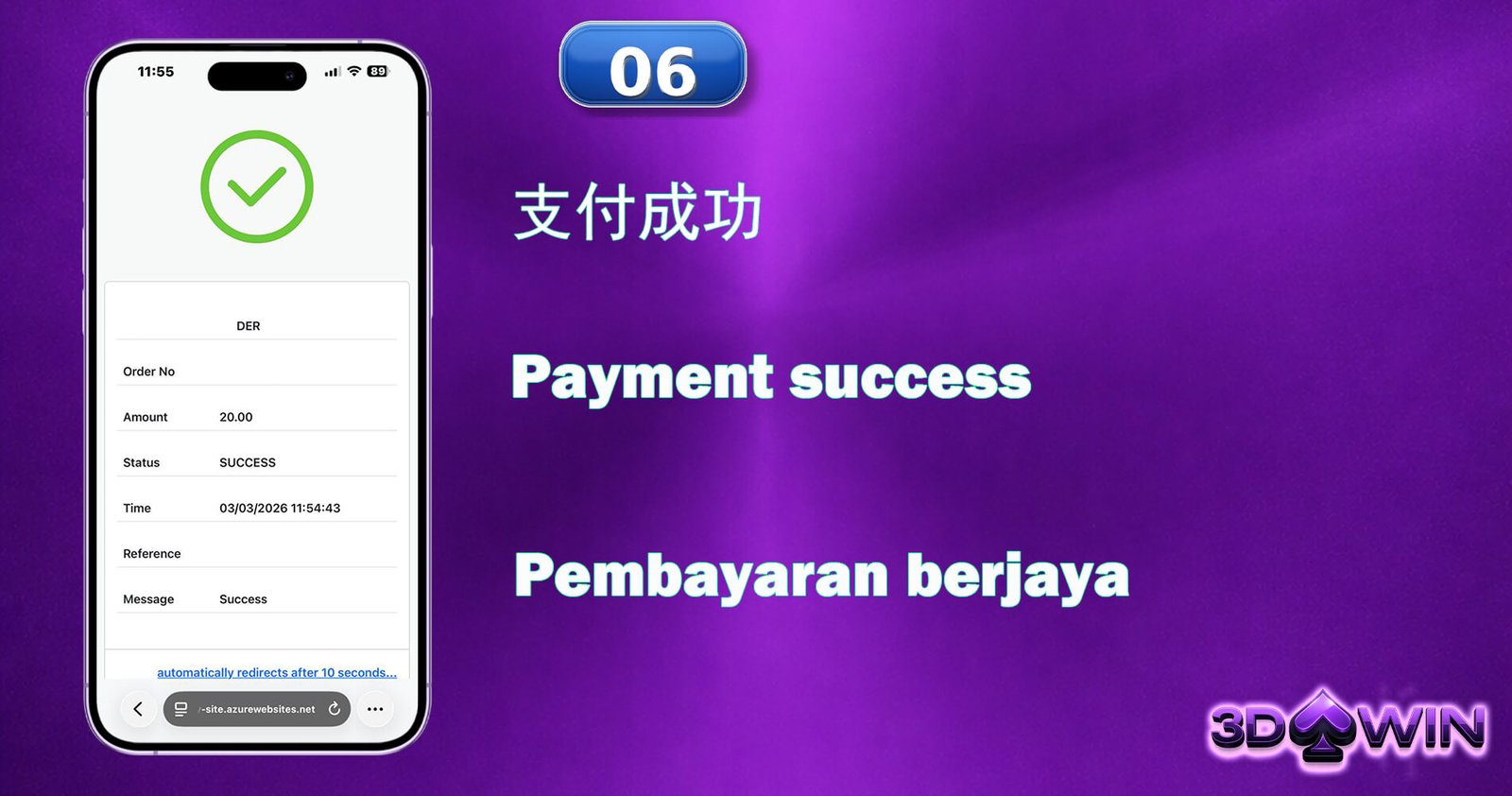 Deposit anda telah selesai! Dompet anda telah dikreditkan serta-merta. Sekarang anda sudah bersedia, teruskan dan nikmati semua permainan kegemaran anda!