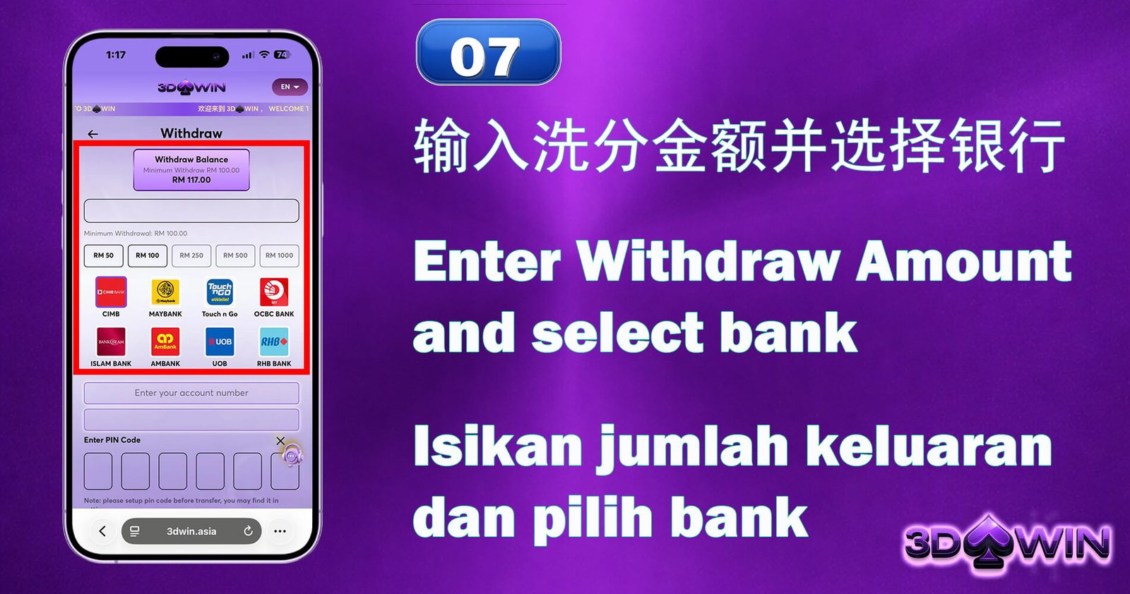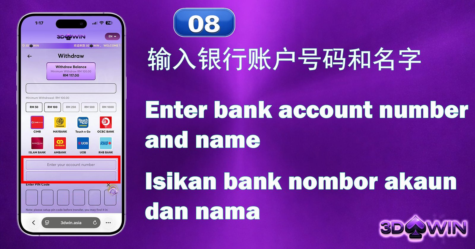 Masukkan nama akaun lengkap dan nombor akaun bank anda tepat seperti yang didaftarkan dengan bank anda. Sahkan sekali lagi untuk mengelakkan transaksi daripada gagal.